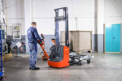 Der Ladungsträger wird meist mit einem Hilfsmittel auf/ in den Anhänger geladen und anschließend an den vorgesehenen Ort transportiert und abgekoppelt. Anschließend fährt der Zug weiter.